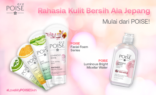 Kalau kamu suka yang praktis, kamu bisa mencoba POISE facial foam dan micellar water yang terbuat dari bahan-bahan alami menggunakan teknologi Jepang.